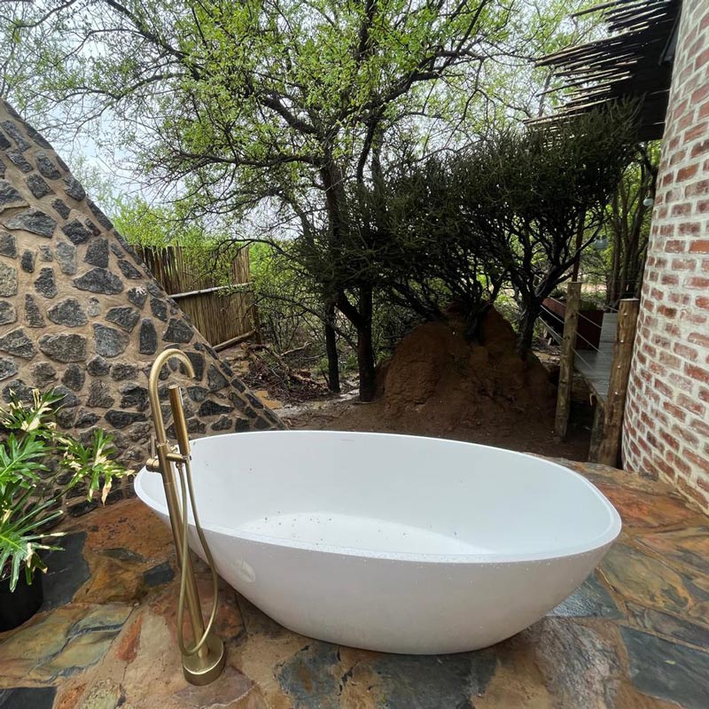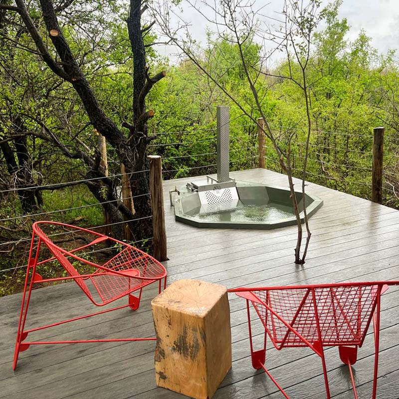 For moments of pure indulgence, most suites feature Kol-Kol woodfired hot tubs and private outdoor patios, where you can sit back and relax as the tranquil wind whispers the secrets of the wild that enwraps you. As the sun sets and the bush lulls to sleep, select rooms invite you to relax by a private fire pit or gaze at the stars from a net hammock. These special touches have been thoughtfully crafted to immerse you in the natural rhythms of Africa.