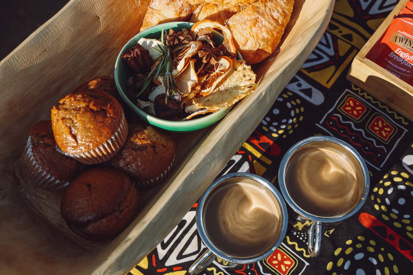 During your guided expeditions, take a moment to recharge in the wild. In the morning, enjoy a freshly brewed cup of coffee and light snacks as you take in the crisp air of the African savannah. At dusk, indulge in a handcrafted cocktail, paired with savoury treats, while watching the golden hues of the setting sun. Every halt is a chance to connect, reflect, and prepare for the next leg of your safari adventure.
